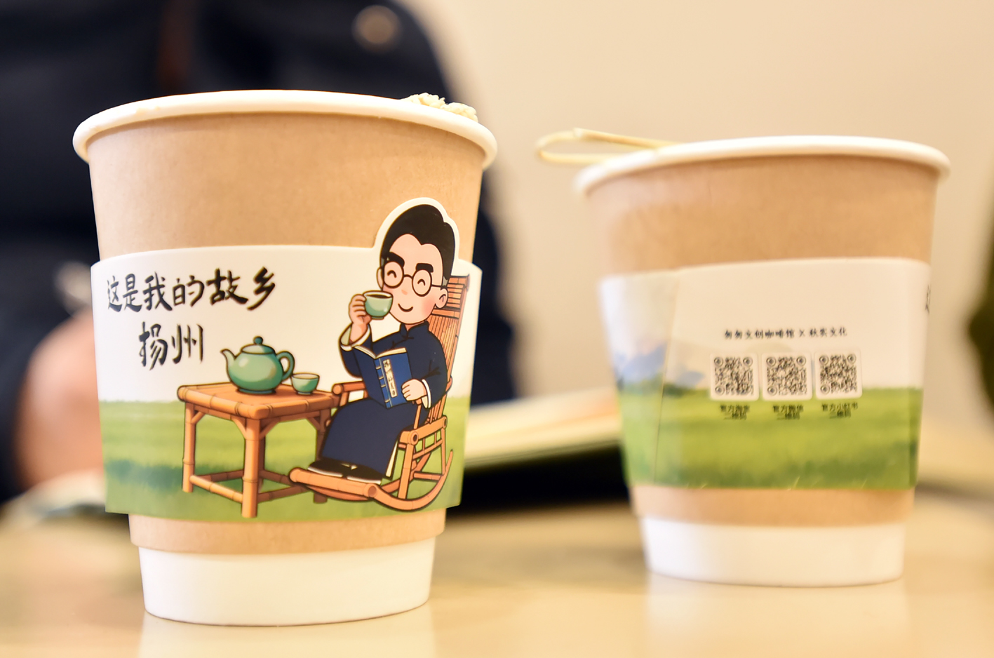 在店里转了一圈,记者发现这里的咖啡“很扬州”。“扬州拿铁”用的是扬大高品质鲜牛乳;“高邮拿铁”融入了咸蛋黄风味;而“宝应美式”则是用宝应莲藕汁调制。记者点了一杯“高邮拿铁”尝了尝,入口先是咖啡的醇厚,随后咸蛋黄的独特咸香慢慢浮现,层次感出乎意料地丰富。