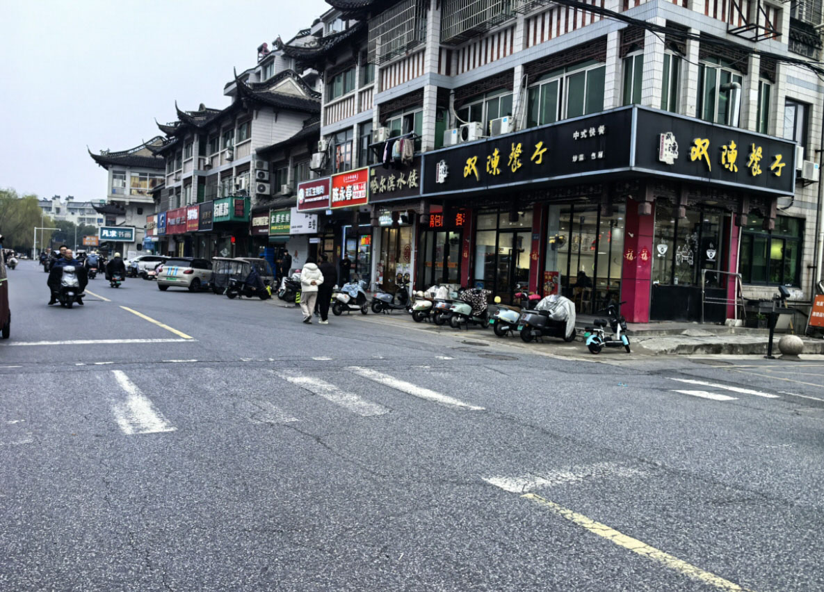 【记者探访】23日,记者在该小区西北门外的车道上看到,路面有一条南北向的过街斑马线,正对着小区出入口,大部分模糊。上午有不少步行进出的业主需要从这里过马路,因为附近有地下停车场入口,所以小区门口的这段车道上来往的机动车较多。现场有的车主能主动减速礼让过马路的行人,而有的车主并不减速,过街行人只能躲避或等待。