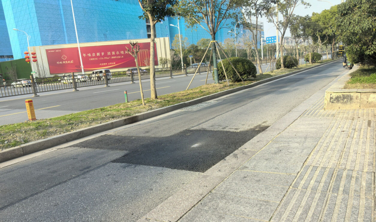 近日,市民钟女士来电反映,小区外的非机动车道上有段路面,施工后一直没有恢复,影响通行。