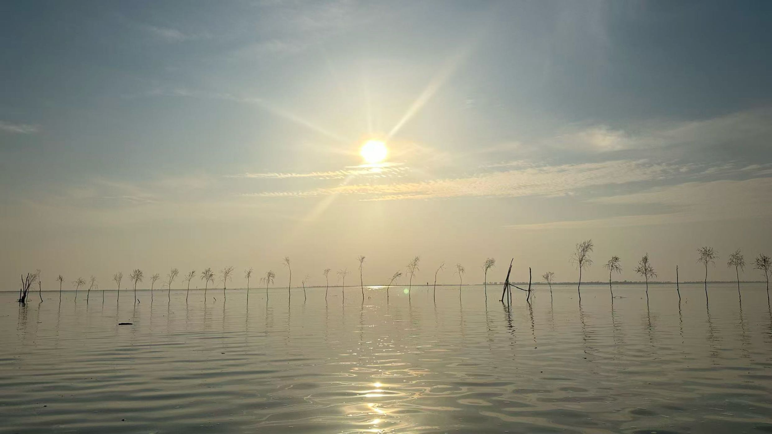 高邮湖再现历史景观“西湖夕照”