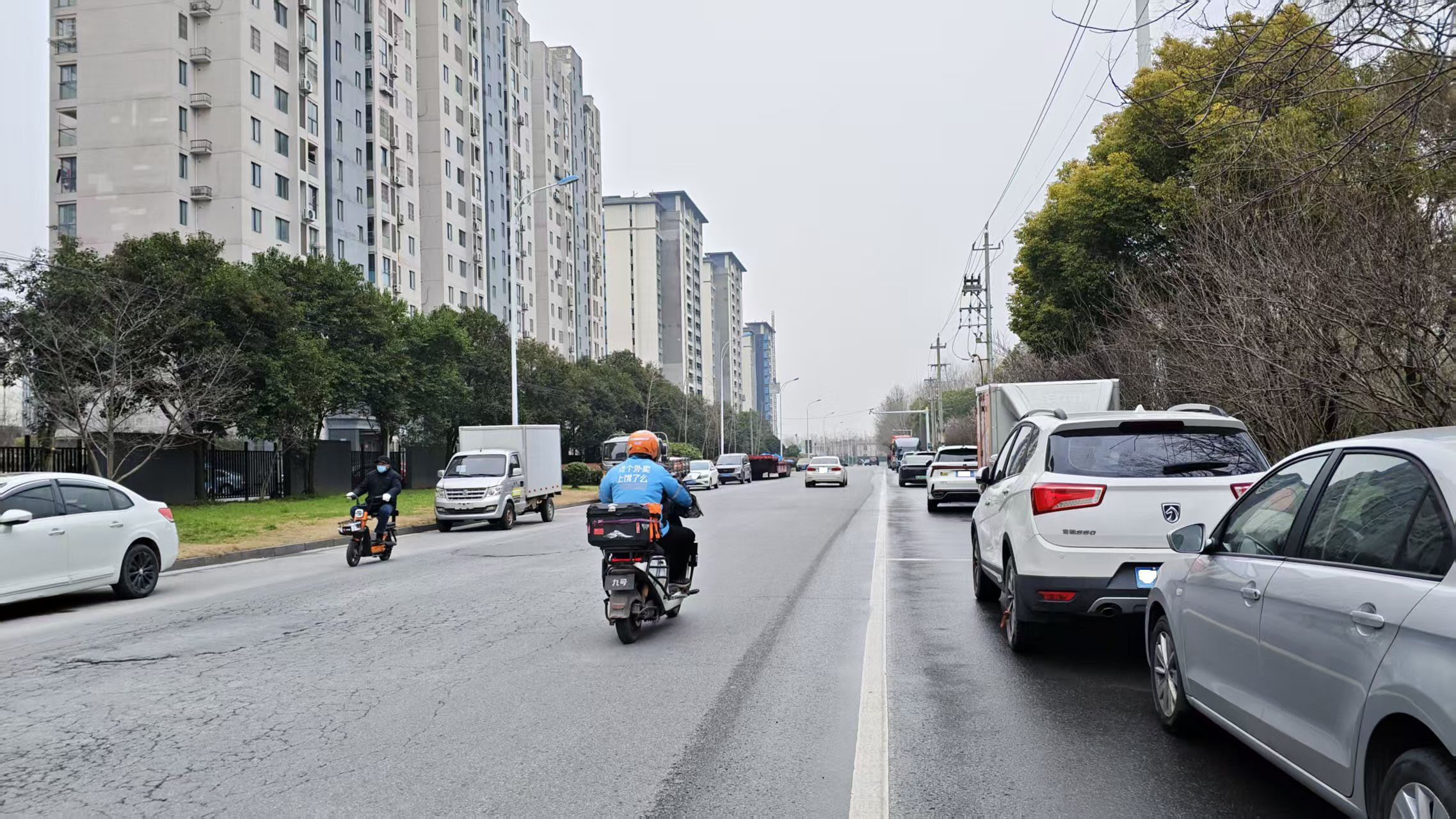 没有画车位的一侧有车乱停