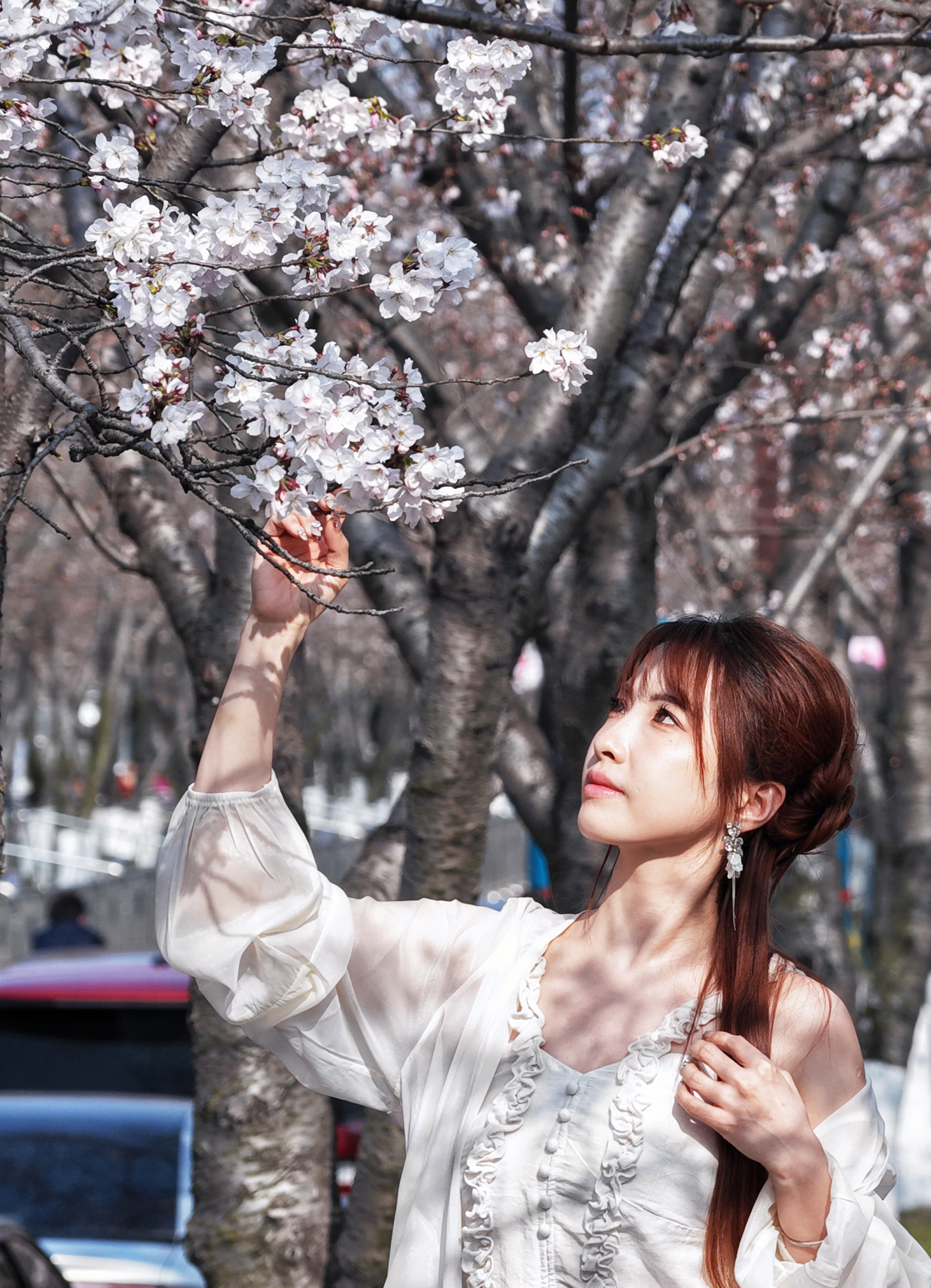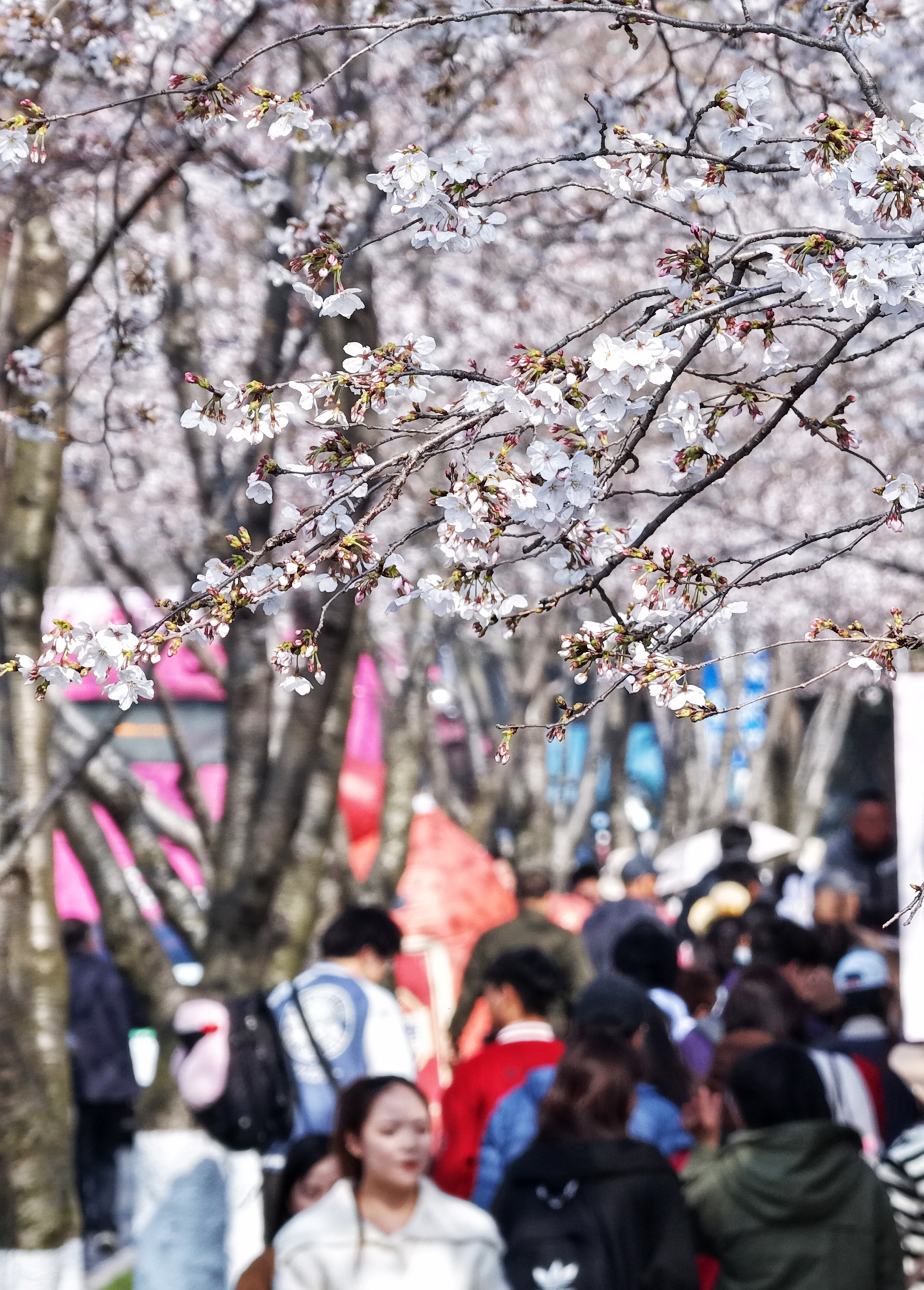 随着气温逐渐回升,鉴真路上千余株樱花竞相绽放,如云似霞,蔚为壮观,吸引众多游客前来踏青赏花,拍照留影,乐享春光。