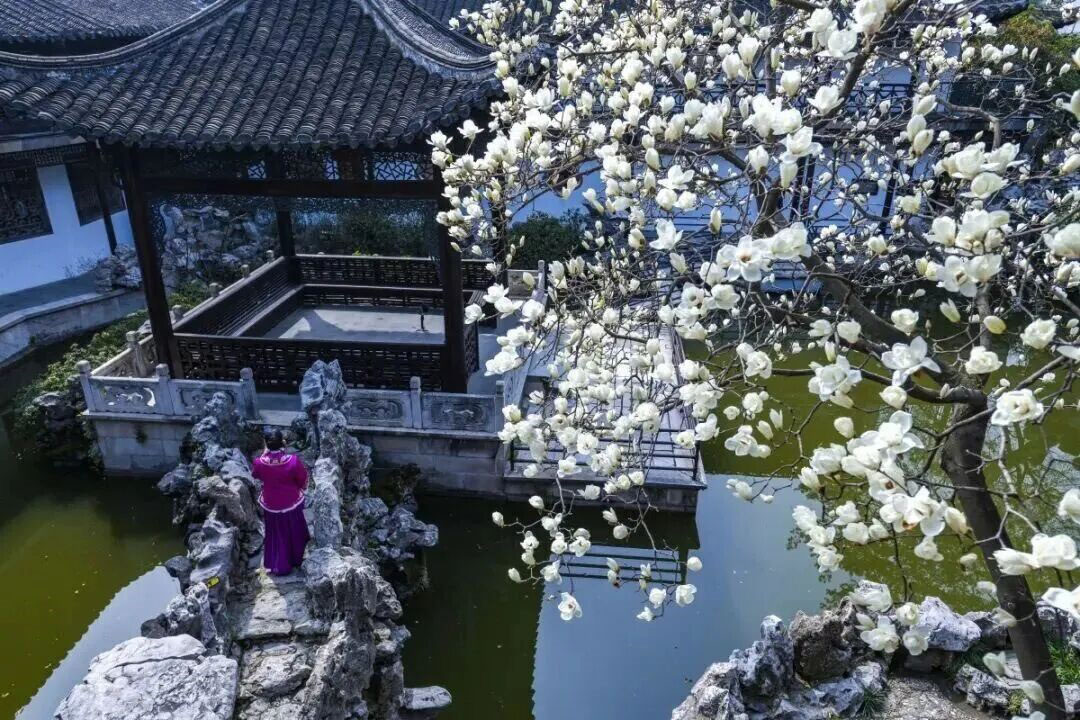 何园玉兰怒放。