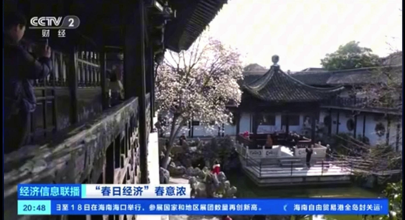 央视聚焦扬州景区“春日经济”。新闻截图