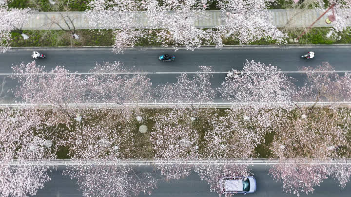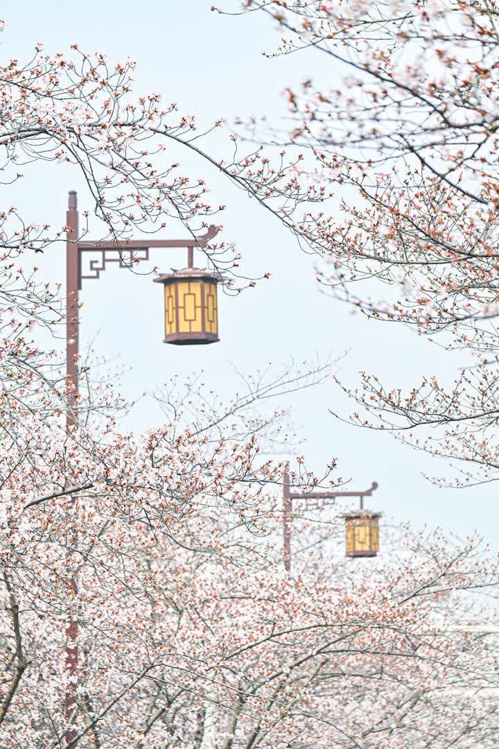 漫步鉴真路樱花大道,道路两侧的樱花树长势繁茂,枝头上层层叠叠的花瓣簇拥绽放,淡粉、纯白的花朵挨挨挤挤,微风拂过,花瓣轻轻飘落,宛若漫天樱雪,行走其间仿佛踏入梦幻花海。阳光透过花枝缝隙洒落,斑驳光影与粉嫩花簇相映,搭配一旁古朴的扬州街巷风貌,将江南春日的温婉与雅致展现得淋漓尽致,不少路段形成“人在花下走,车在画中行”的唯美景致,成为当下扬州最热门的春日打卡点。