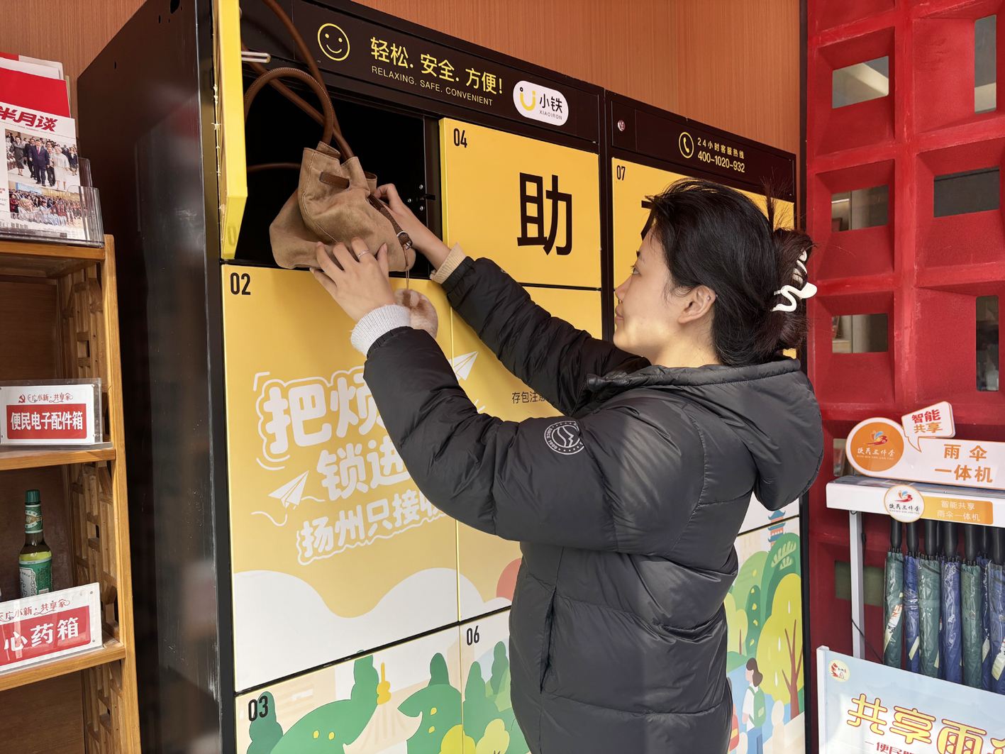 徐凝门街社区相关负责人介绍,考虑到社区紧邻何园景区,游客寄存行李的需求旺盛,而每年一到旅游旺季,景区寄存压力较大,于是社区与景区共建共治,除了在服务点增设行李寄存柜,还开放社区党群服务中心,为游客提供行李寄存服务。