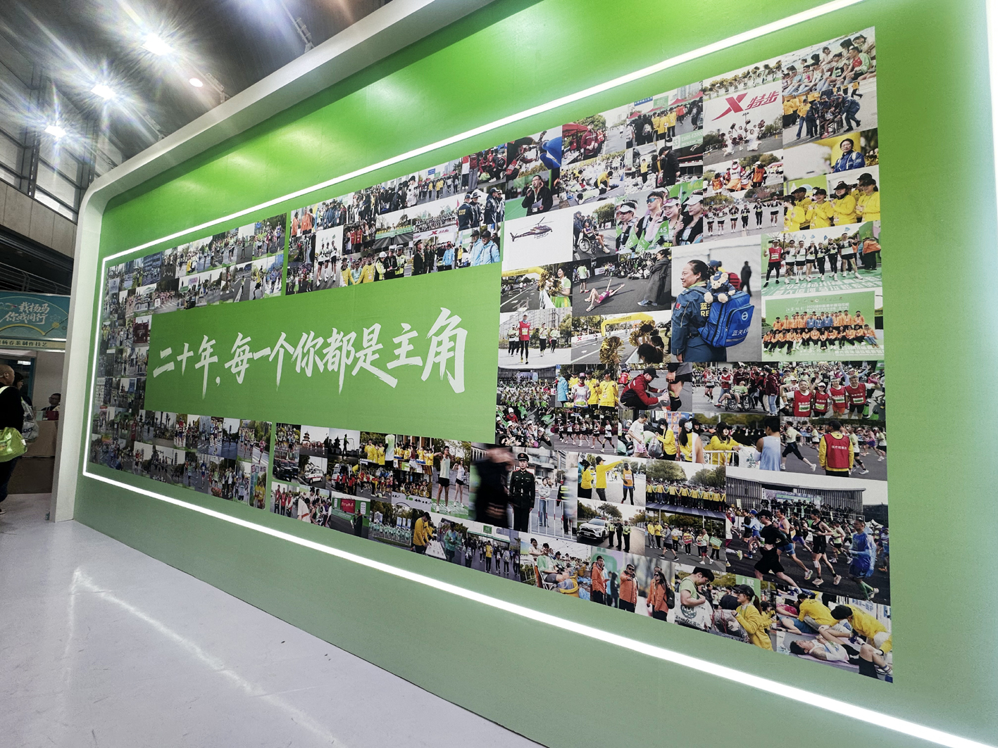 除了字里行间的温情,还有画面定格的热烈。展区里设置了“二十年每一个你都是主角”照片墙,无数扬马跑者与工作人员的定格瞬间组成了扬马这二十年的来路,鲜活的画面、跃动的记忆,串联起二十年的奔跑时光。