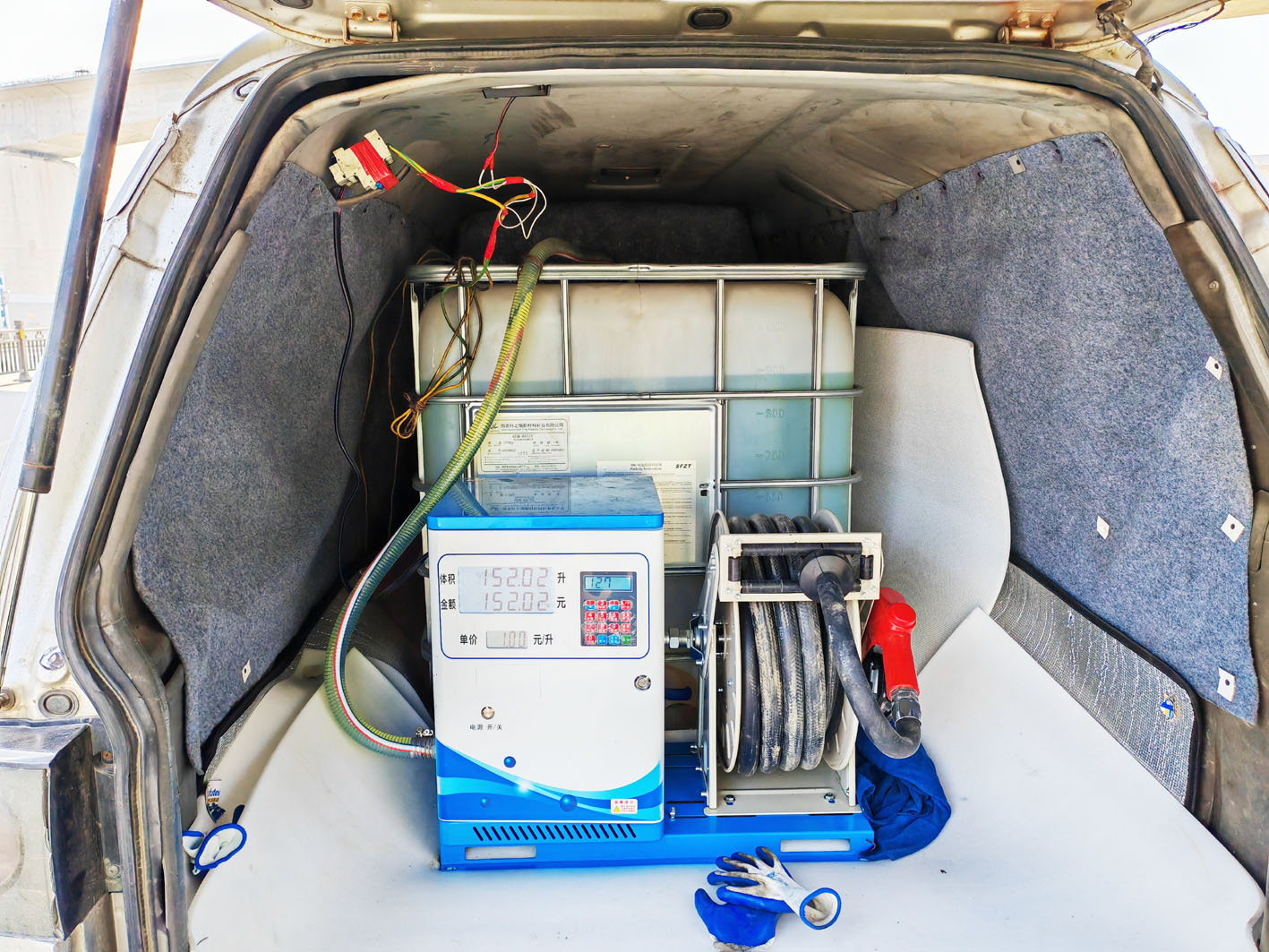 3月24日下午,在邗江区祥园路附近一处停车场内,警方查获一辆正在加油的非法改装加油车。民警当场检查发现,非法加油车外观上没有明显特征,然而车内却暗藏玄机,油罐、油枪、计价器等设备一应俱全,俨然一个小型加油站。这辆非法流动加油车由面包车改装而成。