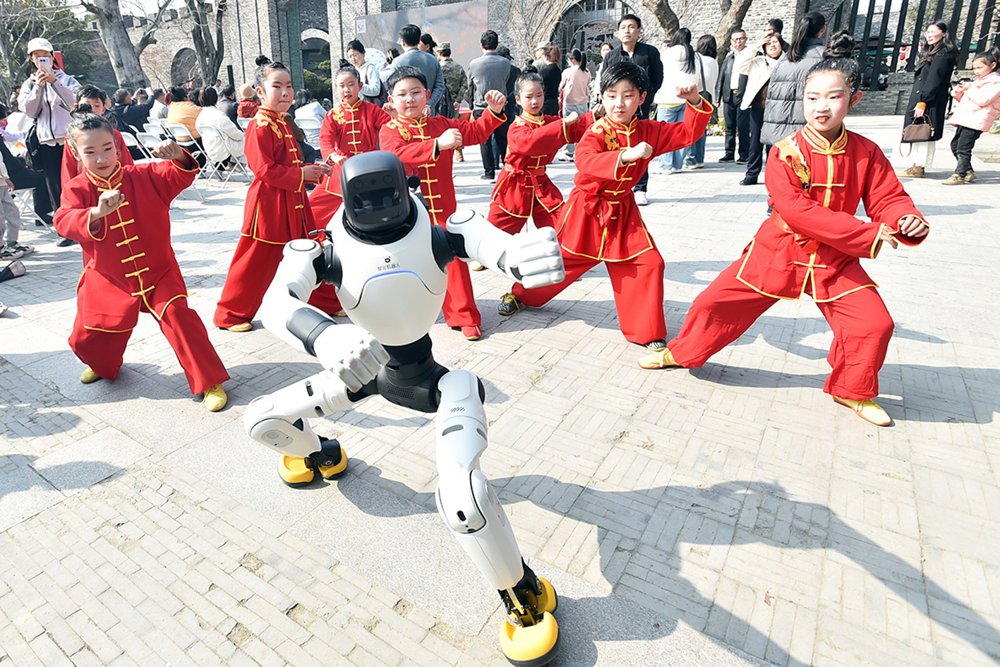 活动现场,智能机器人担纲“武教头”,向喜爱传统武术的孩子们示范展示拳法动作要领,极大地调动了孩子们的体育健身热情和对智能科技领域的强烈求知欲望。