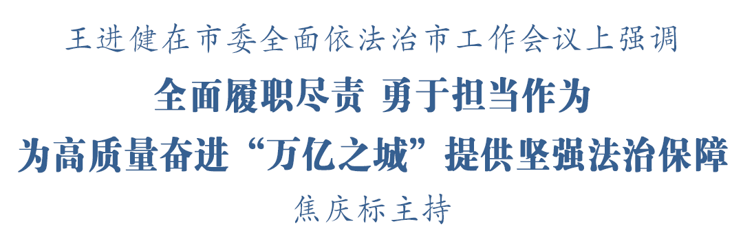 扬州网讯 (记者 伊然 仁辂) 3月27日,市委全面依法治市工作会议召开。市委书记王进健强调,要深入学习贯彻习近平法治思想和习近平总书记对全面依法治国工作的重要指示精神,全面落实中央全面依法治国工作会议、省委全面依法治省工作会议部署要求,动员全市上下履职尽责、真抓实干,为高质量奋进“万亿之城”提供坚强有力的法治保障。市委副书记、秘书长焦庆标主持会议。