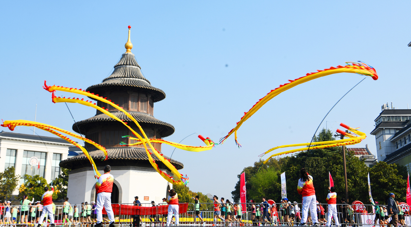 文昌阁赛道、平山堂赛道周边,记者看到花样繁多的各种精彩表演。为参赛选手们加油助威的同时,也给比赛增添了几分别样的精彩。