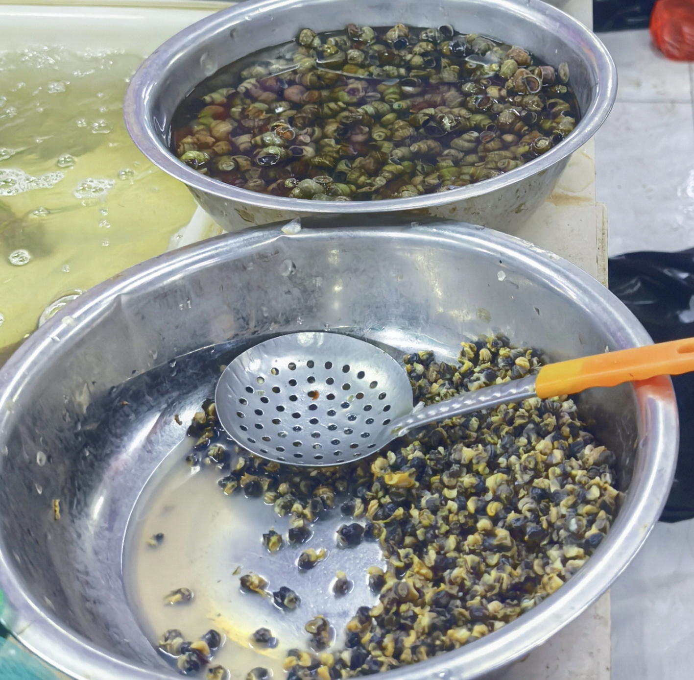 带壳螺蛳和螺蛳肉。 马燕洁 摄