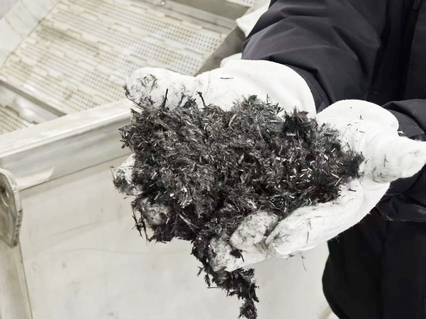 提炼出来的再生碳纤维。 钱伟 摄