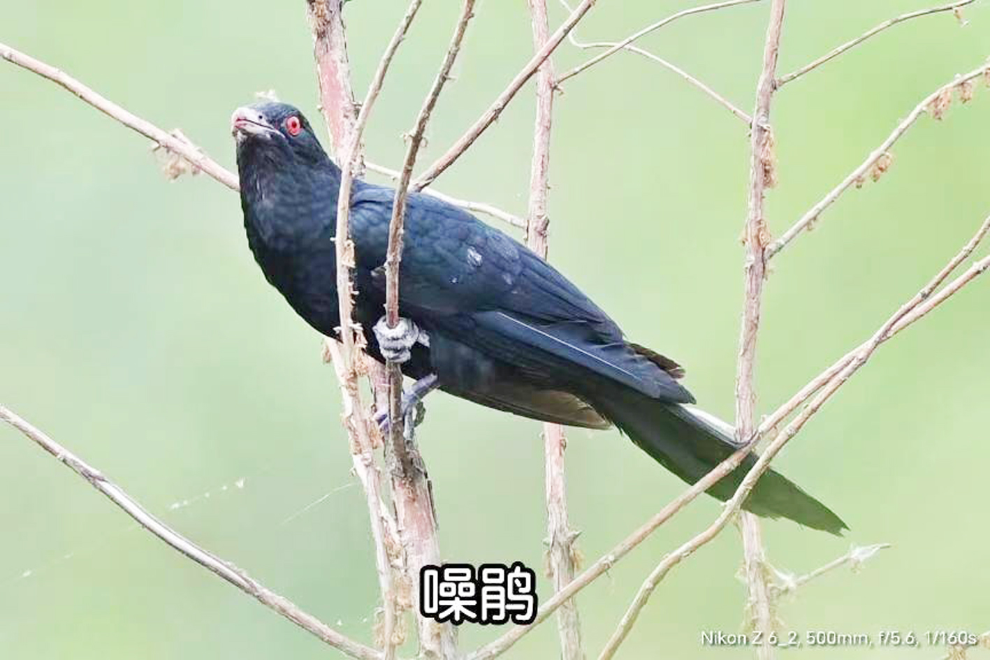 噪鹃习性独特,堪称“闻其声难见其鸟”的典型。它偏爱密林,成鸟黑色羽毛布满白色斑点,搭配亮眼红色虹膜,辨识度极高;作为益鸟,它主要捕食毛毛虫等害虫,偶尔捕食小型蛙类和蜥蜴,对生态有益。
