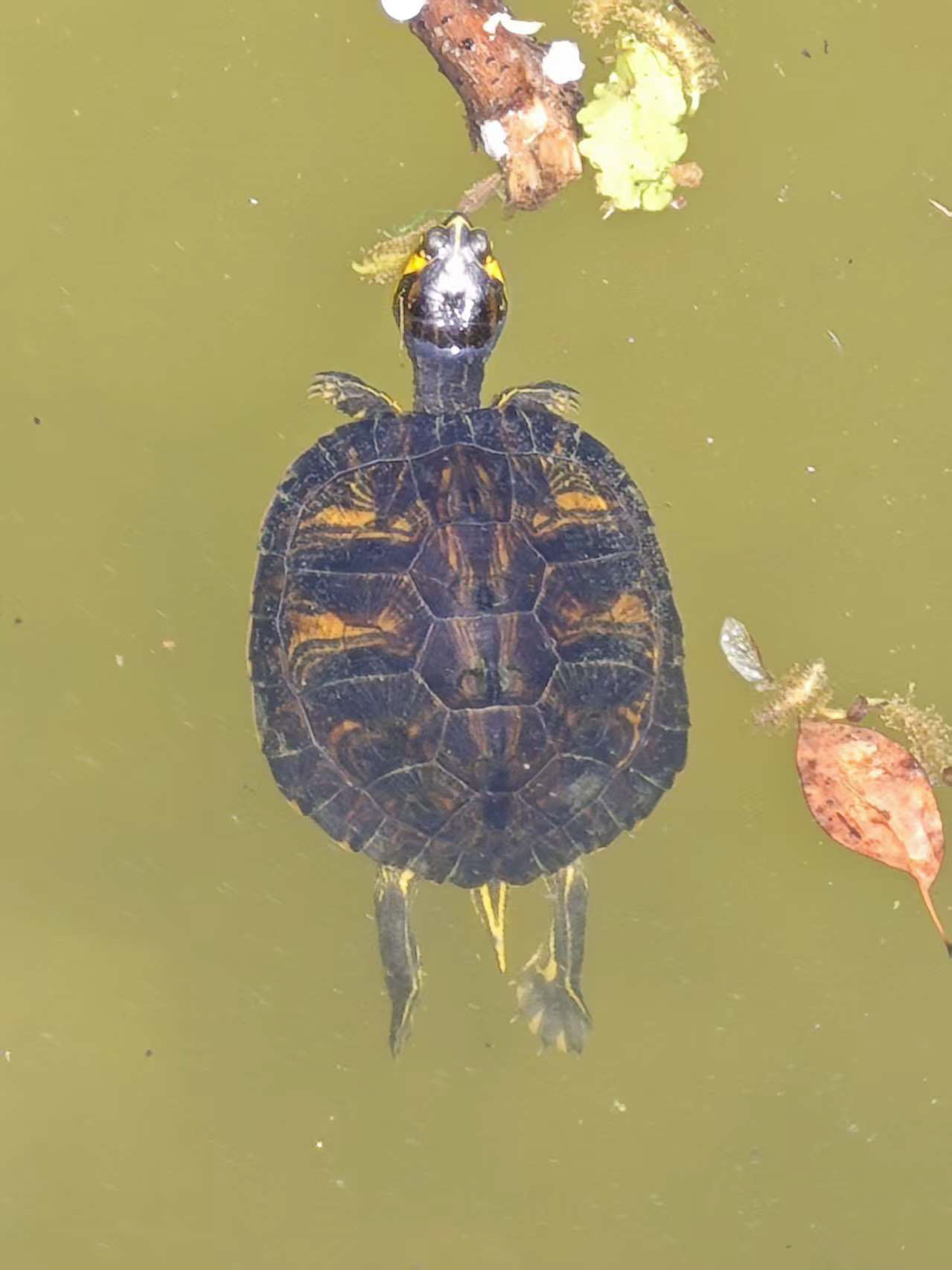 漂浮在水面的黄耳龟