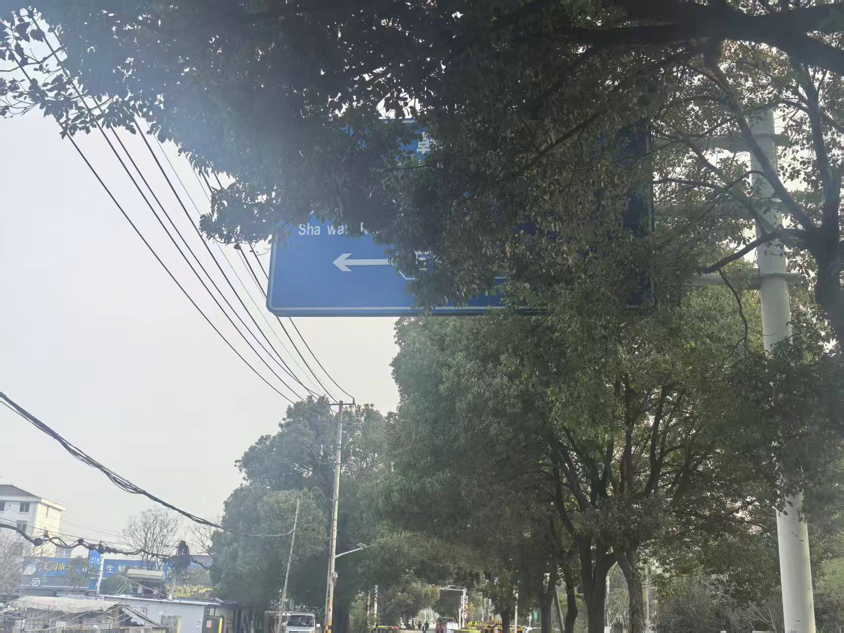 记者看到,在临湾路以东与其平行的一条小路上,路西一排香樟长势非常茂盛。在道路南段靠近万福西路的地方,空中一块指示牌几乎全部被香樟枝叶遮挡,上面的韩西路、沙湾北路、人民路和万福西路等路名全部被挡住,几乎失去指示功能。