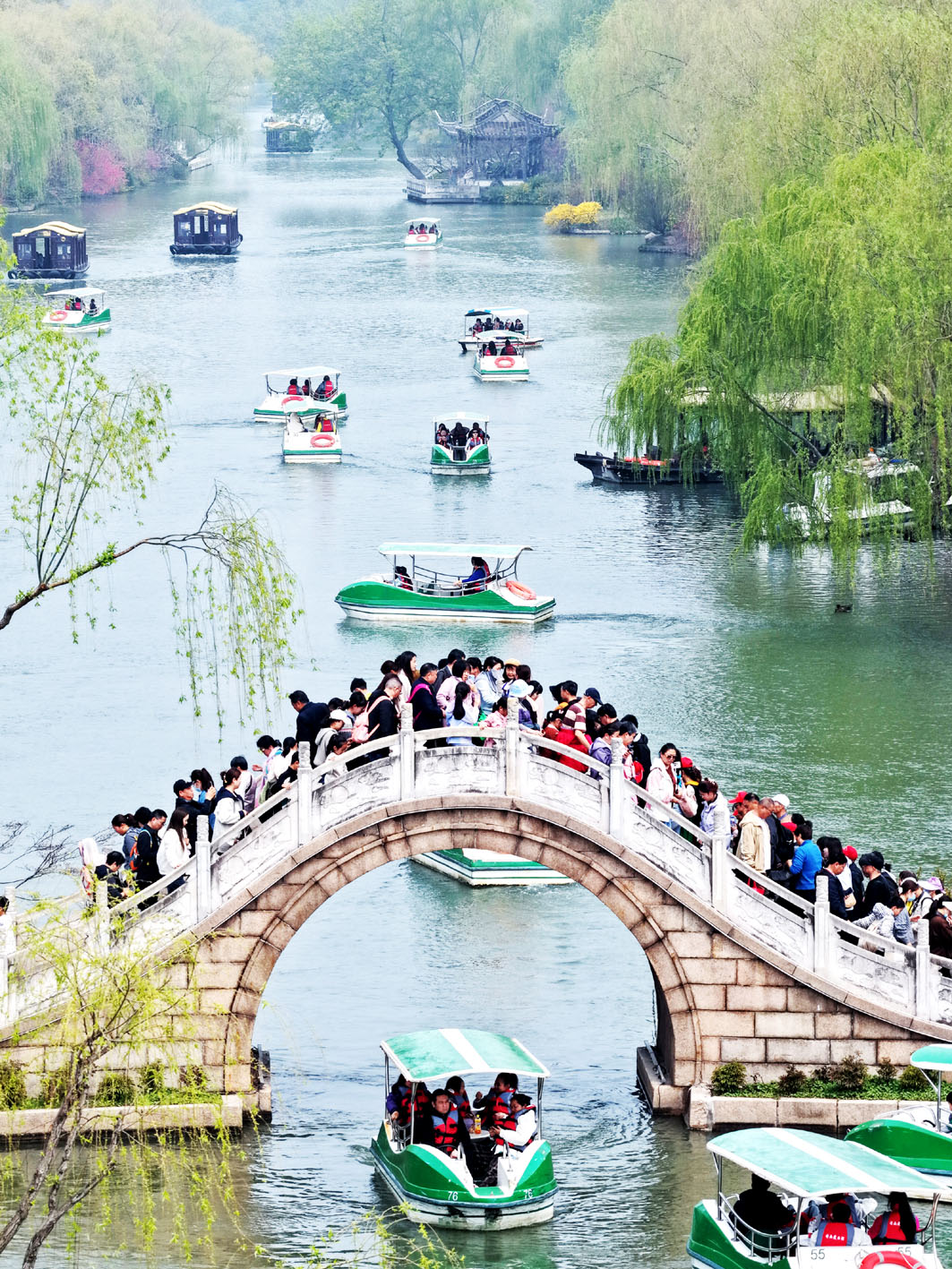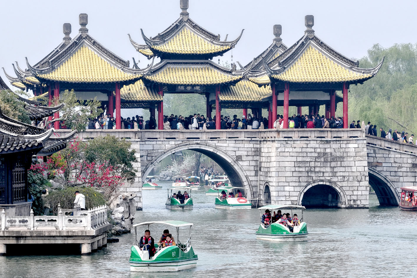春假首日,瘦西湖推出面向全国中小学生的优惠活动,吸引众多亲子游群体前来。孟德龙 摄