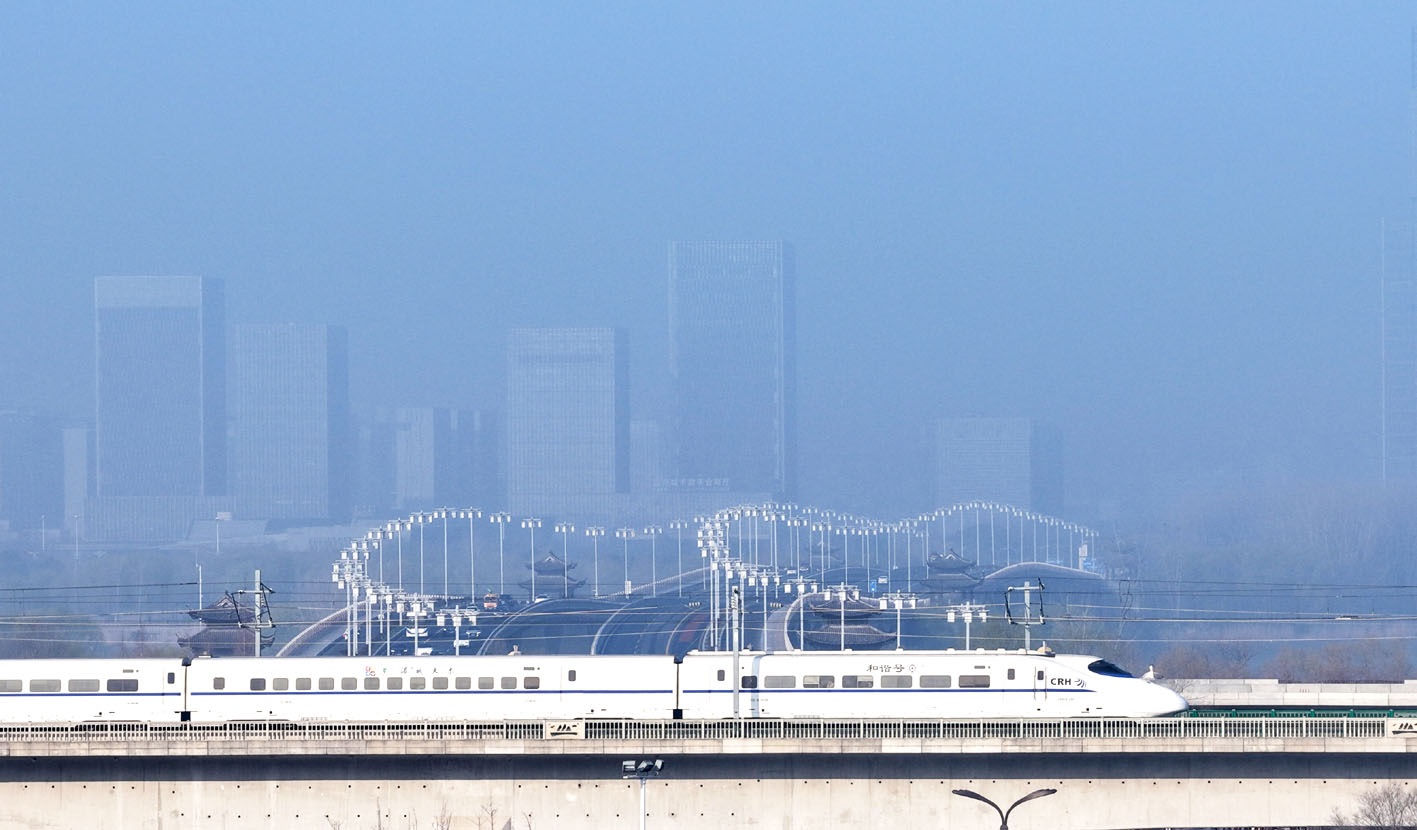 各地游客乘高铁来扬享受春假。图为列车即将驶入扬州东站。孟德龙 摄