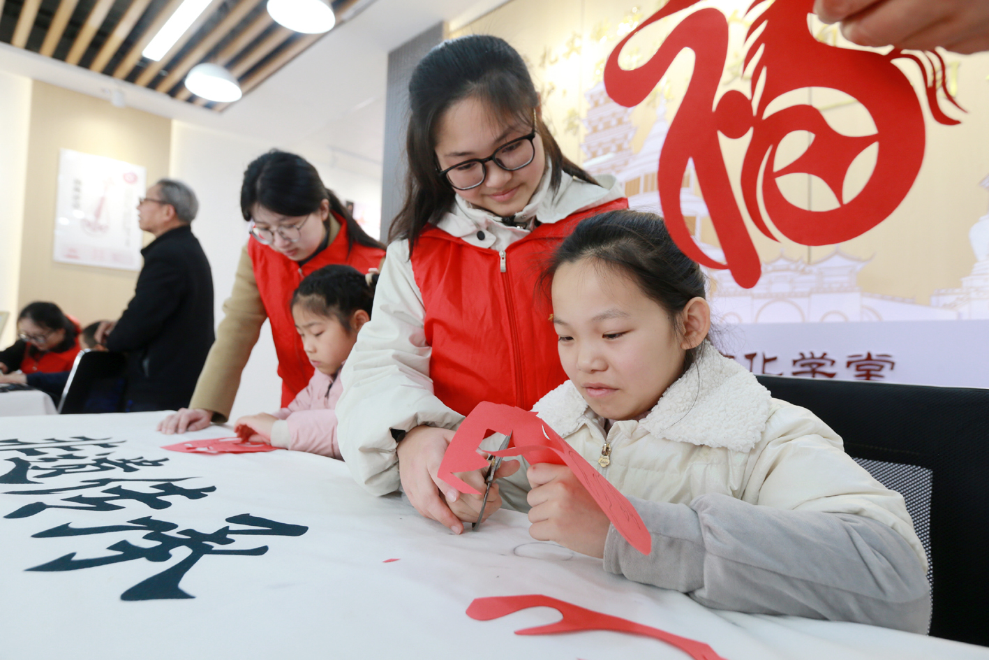 体验剪纸。 孟德龙 摄