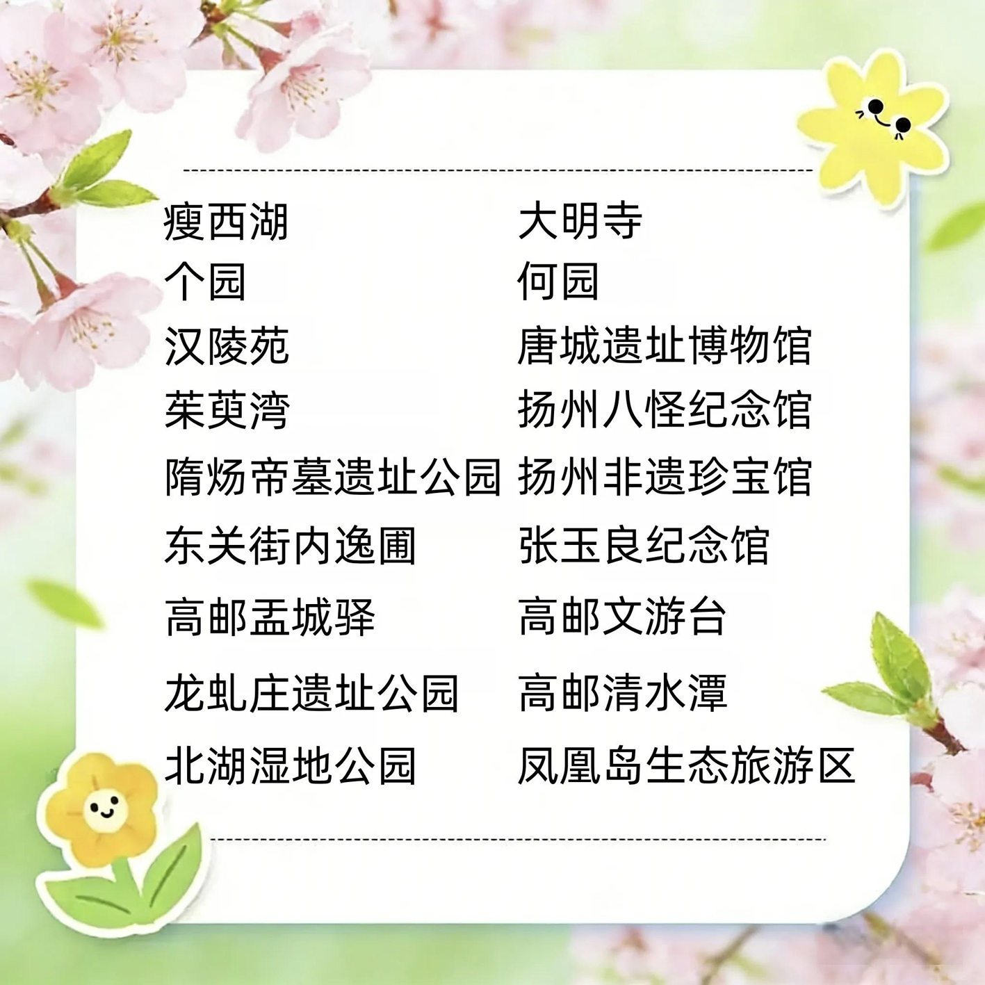 春假期间(4月1日至3日),全市国有收费景区面向全国小学、初中学生实行日间免费入园政策(不含园内二次消费项目)。其中,扬州市每名学生可携1位随行成年人同享免费,其他地区每名学生可携1位随行成年人享受门票半价优惠。