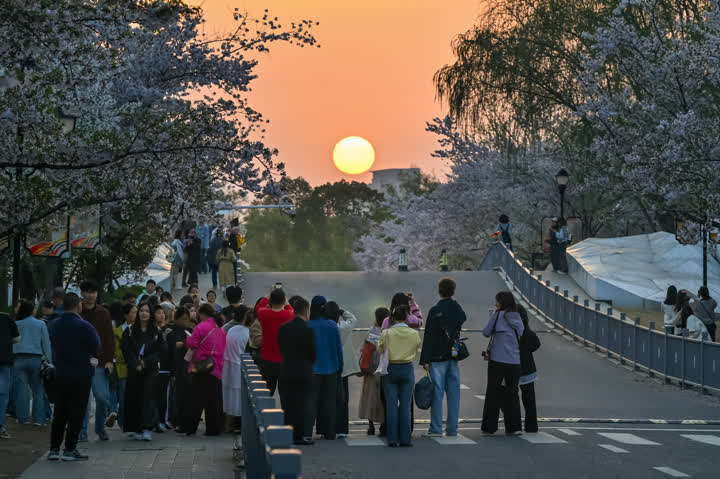 清明假期,春意盎然的扬州运河三湾风景区迎来踏青赏景热潮,旖旎风光与绝美日落吸引八方游客纷至沓来,成为古城春日热门打卡地。