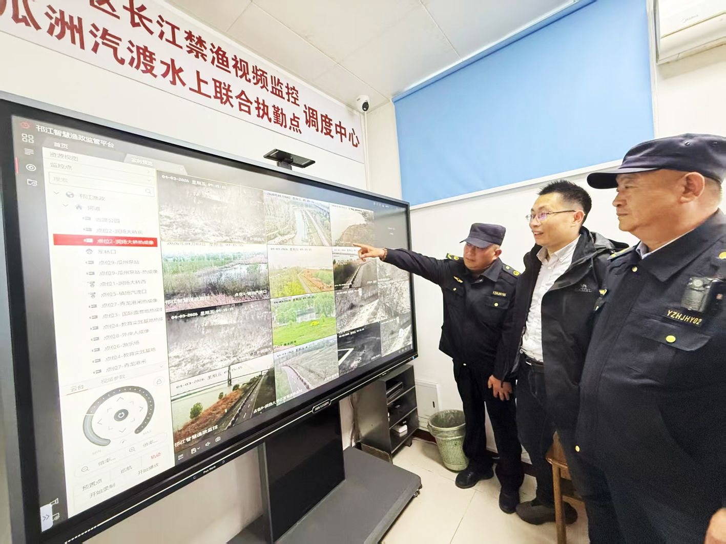 “我们在瓜洲段沿线安装了11个监控设备,每天这里都有人执勤。”在邗江区长江禁渔视频监控调度中心,王明凤指着屏幕上的监控画面,向记者介绍起智慧渔政监管平台。据悉,该平台已稳定运行3年多,与公安部门联勤联动,11个监控杆搭载高清摄像头与热成像设备,实现白天全彩监控、夜间人体发热轨迹捕捉。