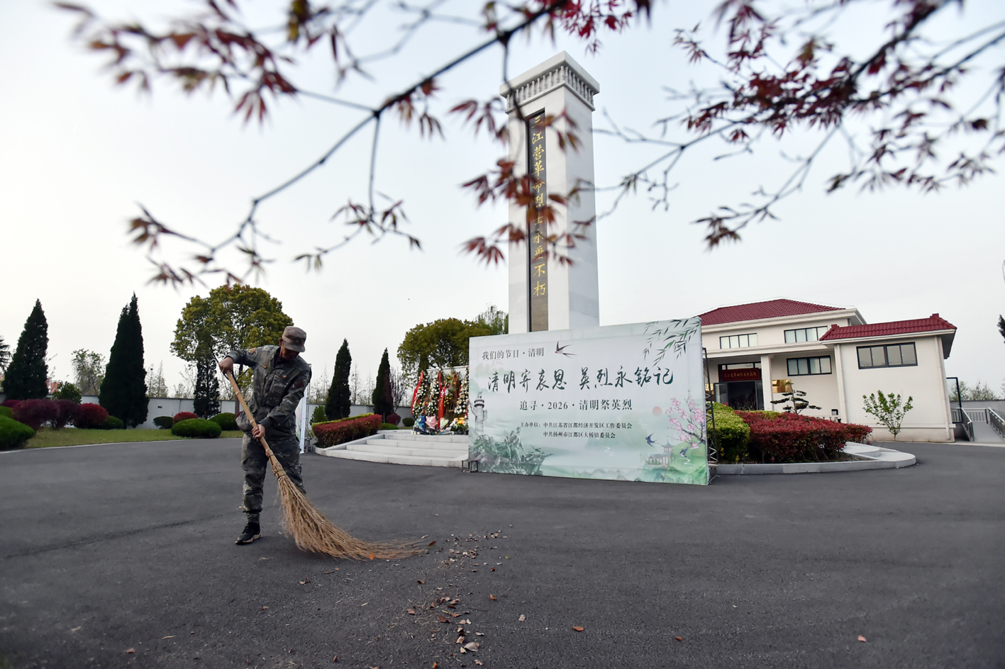 2020年,退伍老兵张明海得知,位于家乡大桥镇内的三江营革命烈士纪念馆需要专人值守,便主动请缨担任守墓人和红色教育义务讲解员。从此,他便全年无休,负责三江营革命烈士纪念馆内外卫生环境及墓碑的日常维护。