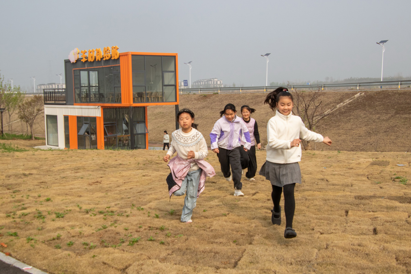 4月6日,仪征市刘集镇白羊村的乡野间迎来了一群小学生。孩子们在田埂间自由奔跑,在合影板前嬉闹留影感受春天的生机。 乔家明
