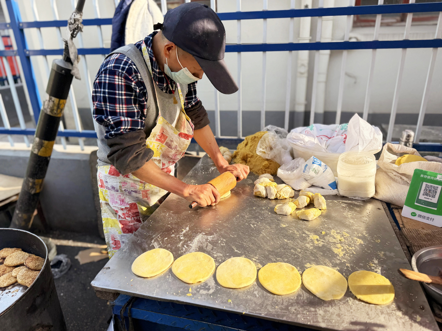 夫妻二人每天清晨5点在红叶小区的门市摆摊,下午2点,张叶发独自在资福大院门口卖烧饼,他妻子则留在红叶小区的门市里继续售卖。这样的节奏,酷暑寒冬,从未间断。“只要还有人爱吃,我就一直做下去。”