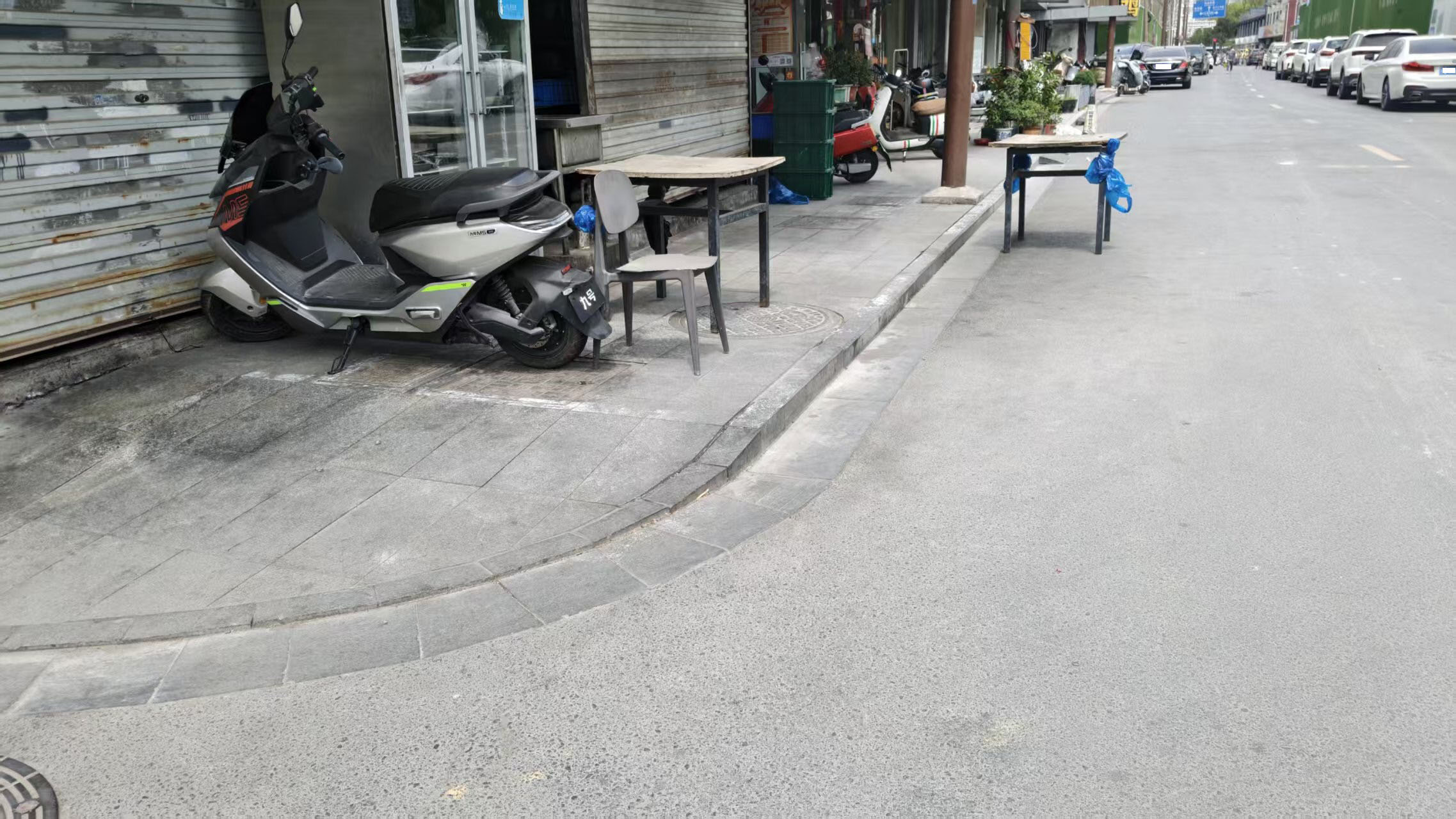 记者还留意到,有的商铺门前狭窄的步道停了多辆电动车,个别车辆还充着电,环境较乱。