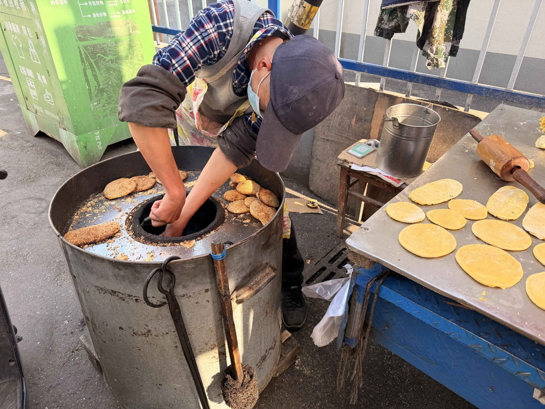 说话间,第一批烧饼出炉了。张叶发用长钳将烤得金黄酥脆的烧饼从炉中夹出,焦香瞬间弥漫开来。刚出炉的烧饼外皮酥脆,内里柔软,咬一口,炭火的香气在齿间散开。