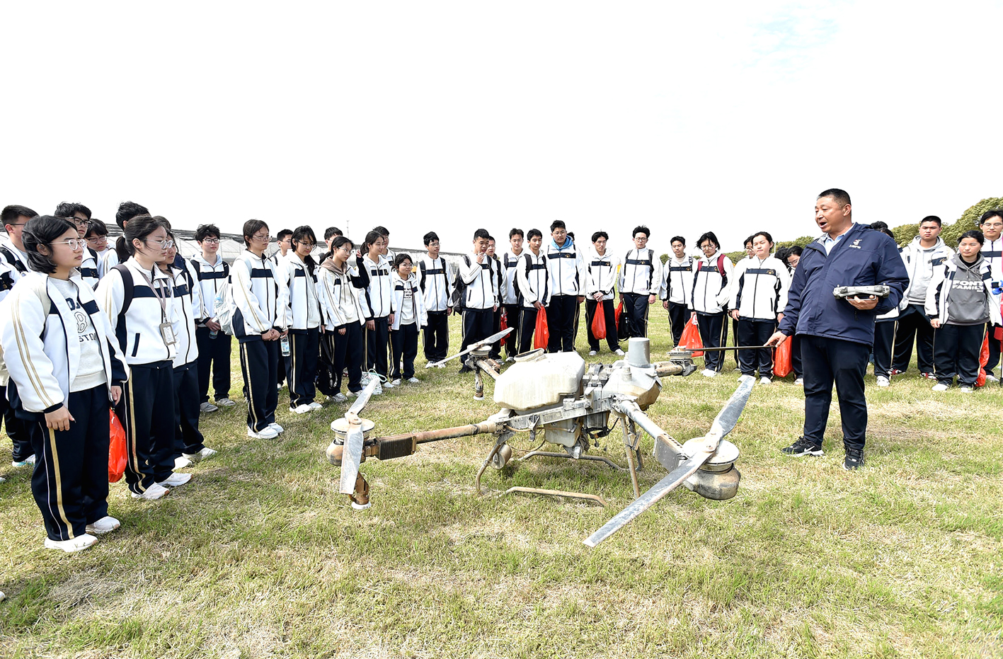 连日来,高邮中学高一年级800余名师生怀着饱满的热情,分批走进国家级农科园区飞扬综合实践基地,开展以“知行合一践初心 劳育润心促成长”为主题的科学与劳动教育实践活动。图为学生了解无人机助力科技兴农。 庄文斌 摄