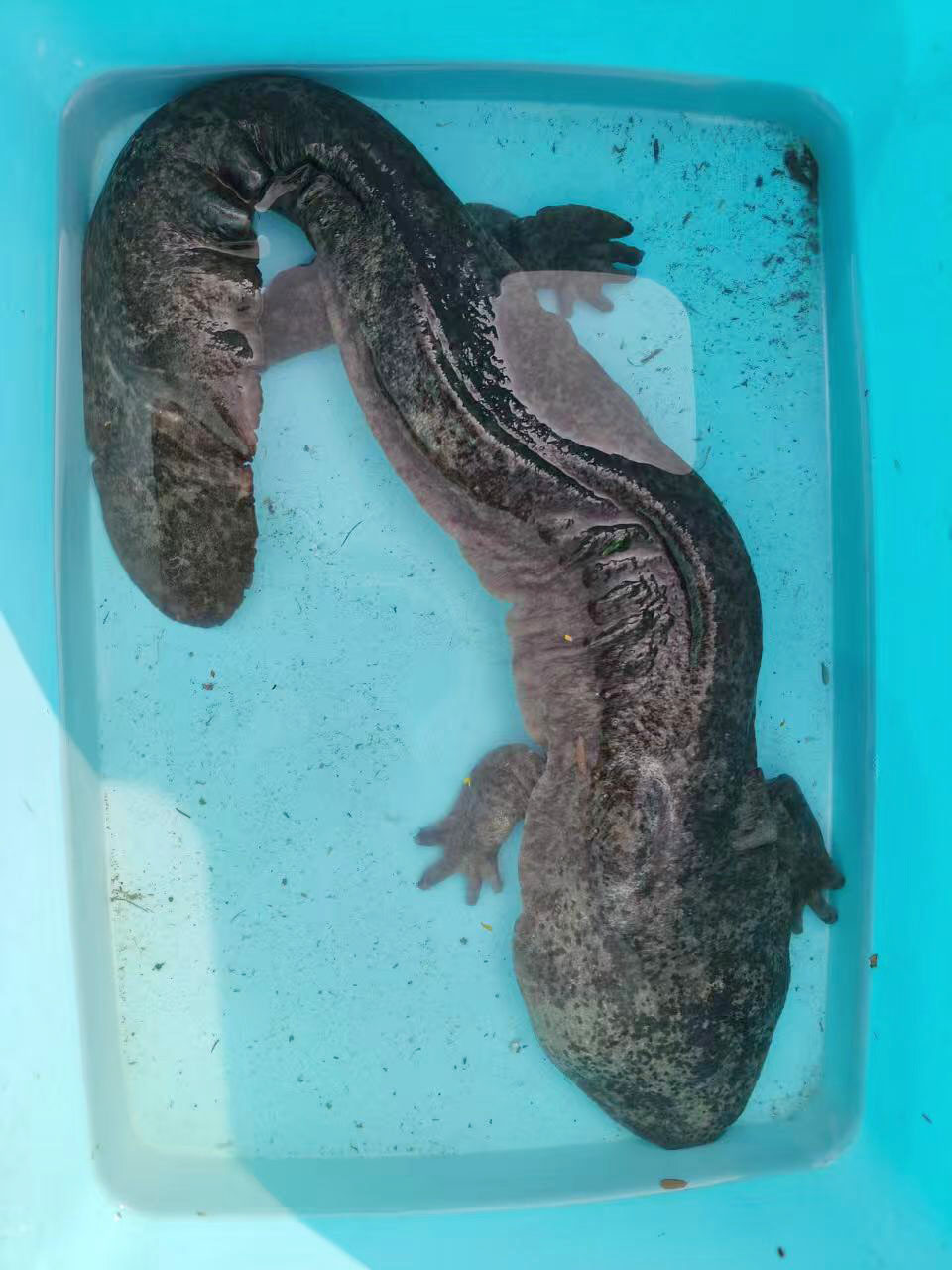 野生动物救助中心工作人员确认,这是国家二级重点保护野生动物娃娃鱼。目前,工作人员已对娃娃鱼进行了专业的全面检查和养护,经过科学照料,这条娃娃鱼精神有所恢复。