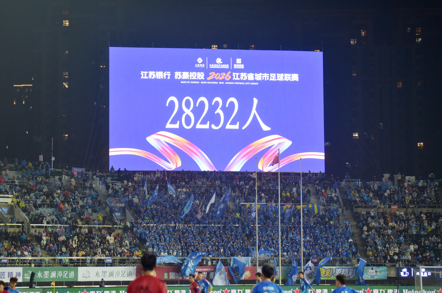 11日晚,“江苏银行 苏豪控股”2026年江苏省城市足球联赛(以下简称“苏超”联赛)大幕揭开。在首轮较量中,扬州队在主场迎战苏州队。结果全场占据优势的扬州队0比1不敌对手,遗憾地遭遇失利。尽管未能取得开门红,但是今年扬州队的首秀却给现场的28232名球迷带来了耳目一新的感觉,通过这场比赛看到,扬州队的进步很明显。