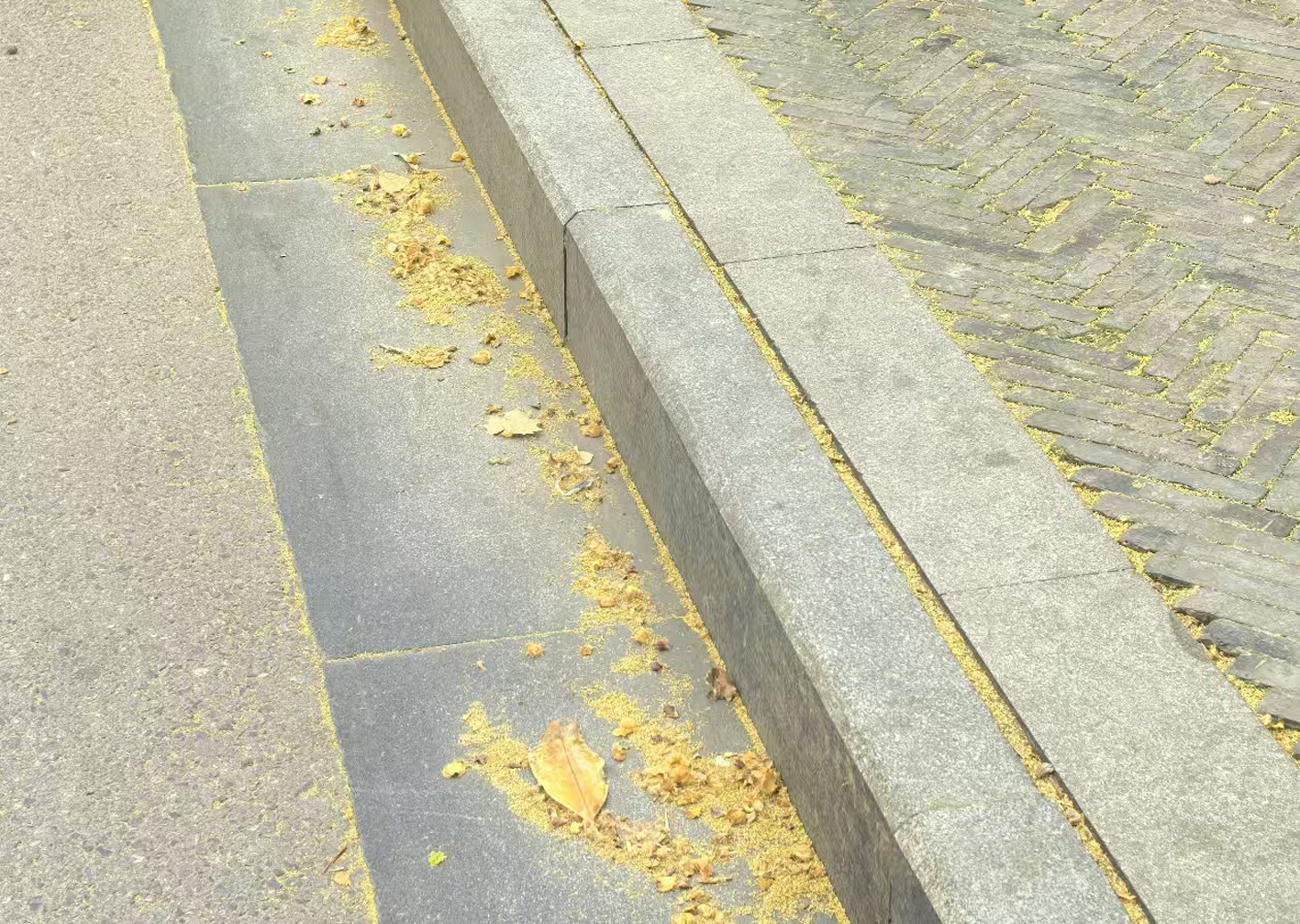 春风吹,飞絮到。作为“行道树之王”的法桐,到了每年的4月至5月,枝头高挂的果球进入自然成熟炸裂阶段,大量棕黄色果毛随风飘散,形成“黄金雨”落下。尤其扬州大学南路、国庆路、淮海路、解放南路等法桐种植密集路段,树下飘浮的黄色絮状物明显增多,市民经过这些路段需做好防护。