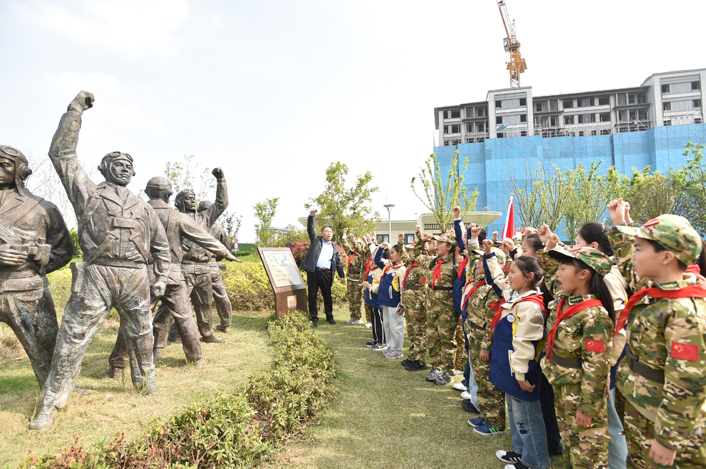全民国家安全教育日即将到来,扬州经济技术开发区少工委联合扬州市花园小学,开展创新思政教育研学实践活动。图为少先队员们走进扬州市总体国家安全观主题公园。 庄文斌 韦文东 摄