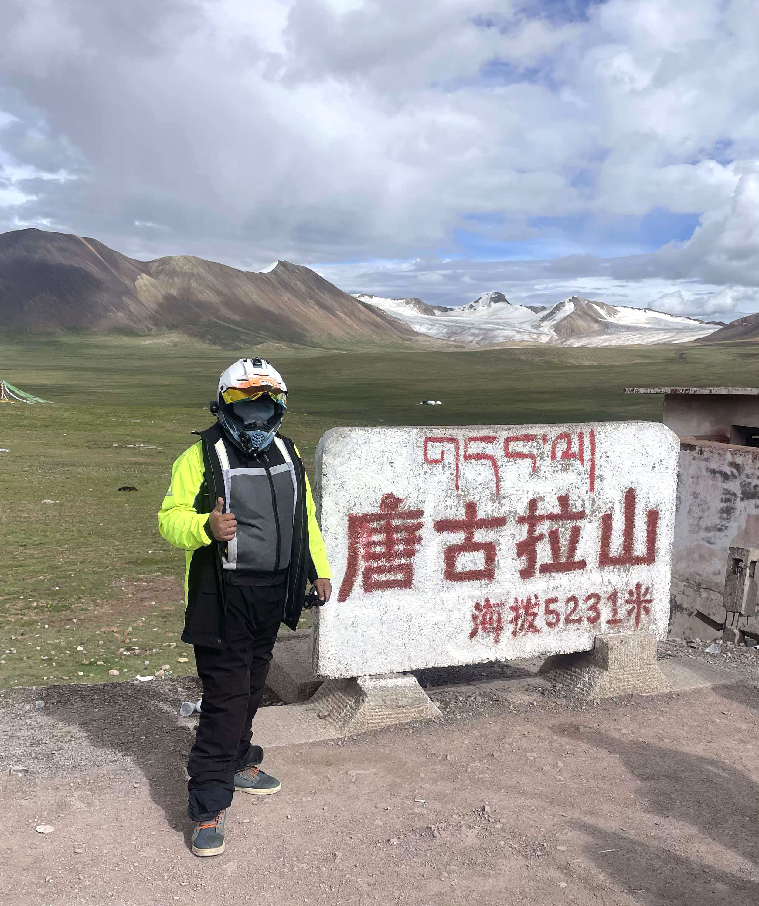 2024年,鲍飞带着女儿,开启了一场难忘的万里摩旅——从扬州出发,沿318国道骑行至拉萨、珠峰大本营,返程沿109国道穿越青藏高原,途经可可西里自然保护区,全程往返约1万公里,历时25天。