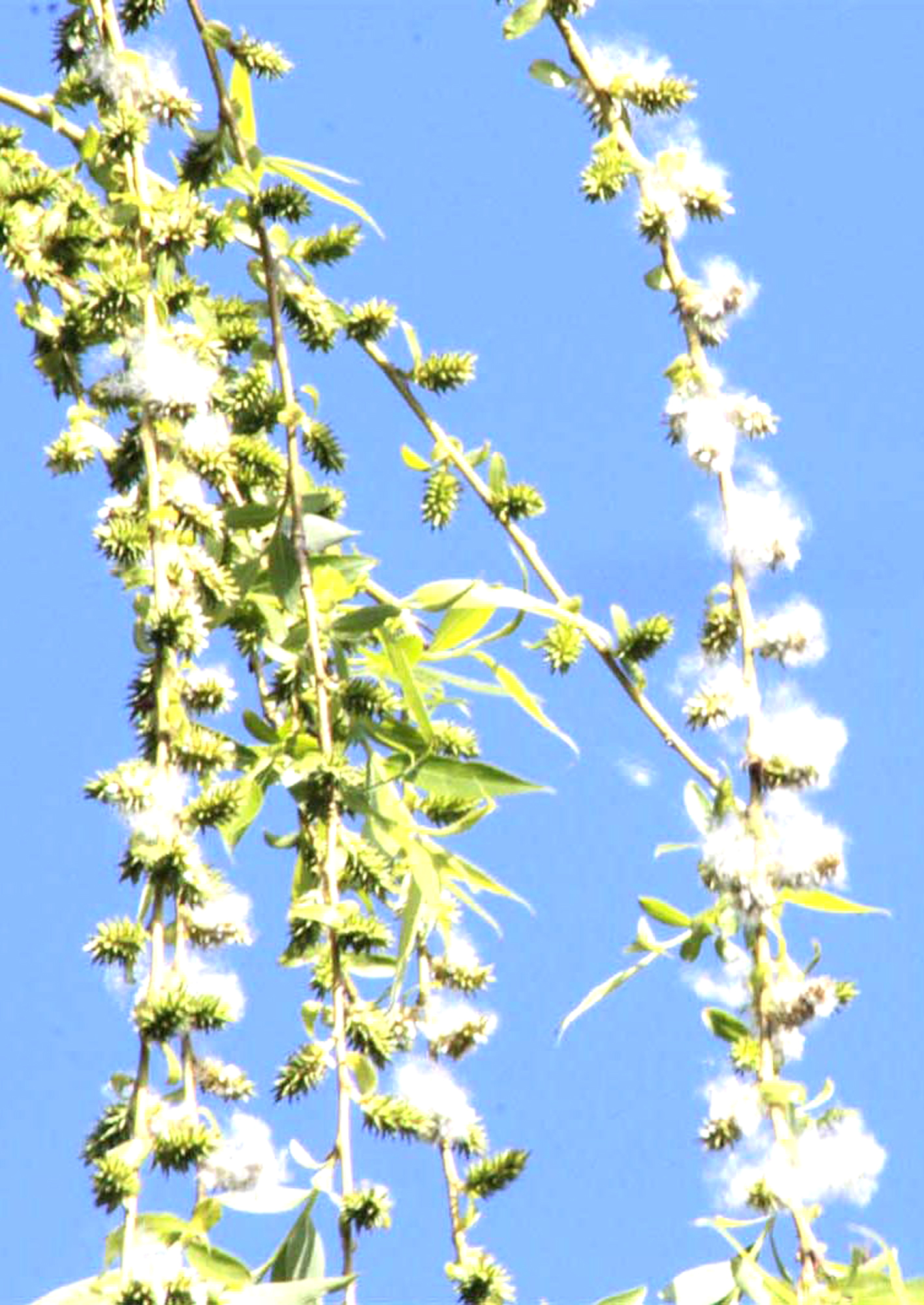 每年早春,很多柳树花叶同放,人们看到的“万条垂下绿丝绦”的“绿”,不仅仅是绿叶,还有绿色的花芽。柳树完成授粉后,结出细小的蒴果,待到4月气温回升,蒴果逐渐成熟开裂,包裹着白色绒毛的微小种子便随风飘散,这就是人们看到的柳絮,本质是柳树借助风力传播种子、延续生命的自然过程。