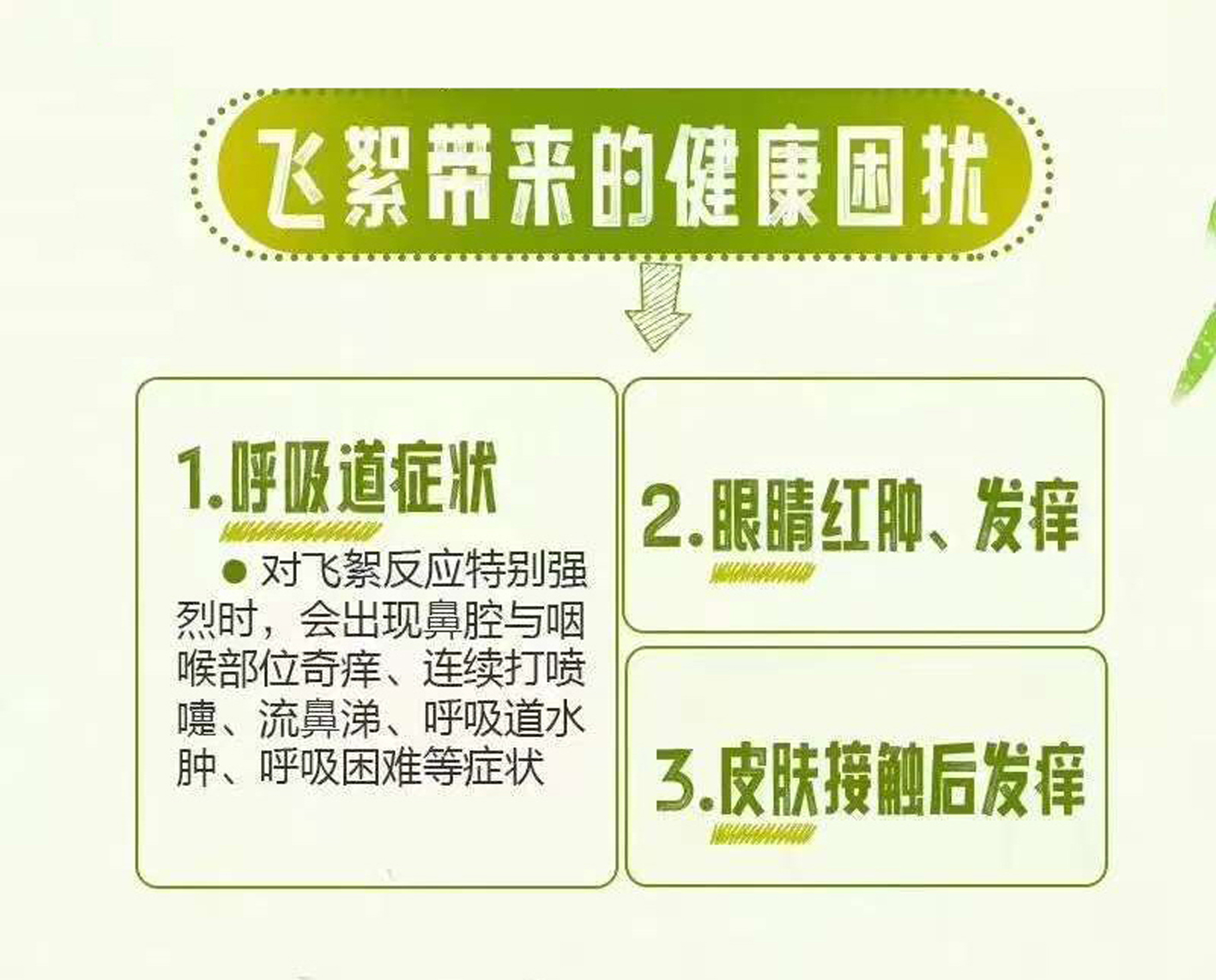 飞絮本身不是过敏原,但容易携带花粉、尘螨等物质,引发打喷嚏、流鼻涕、眼睛痒、皮肤红肿等过敏症状,易感人群主要包括过敏体质者、儿童、老年人及患有哮喘等呼吸道疾病的人群。