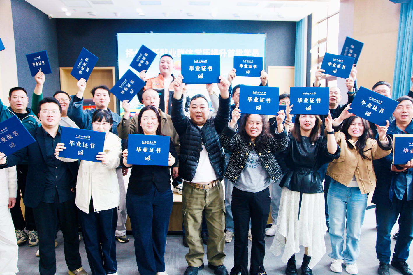 扬州网讯 (通讯员 乔蓉蓉 记者 胡俭 余佳) “我们毕业了!”4月15日下午,扬州市工人文化宫职工之家,首批25名新就业群体学历提升学员手捧江苏开放大学毕业证书欢呼合影。