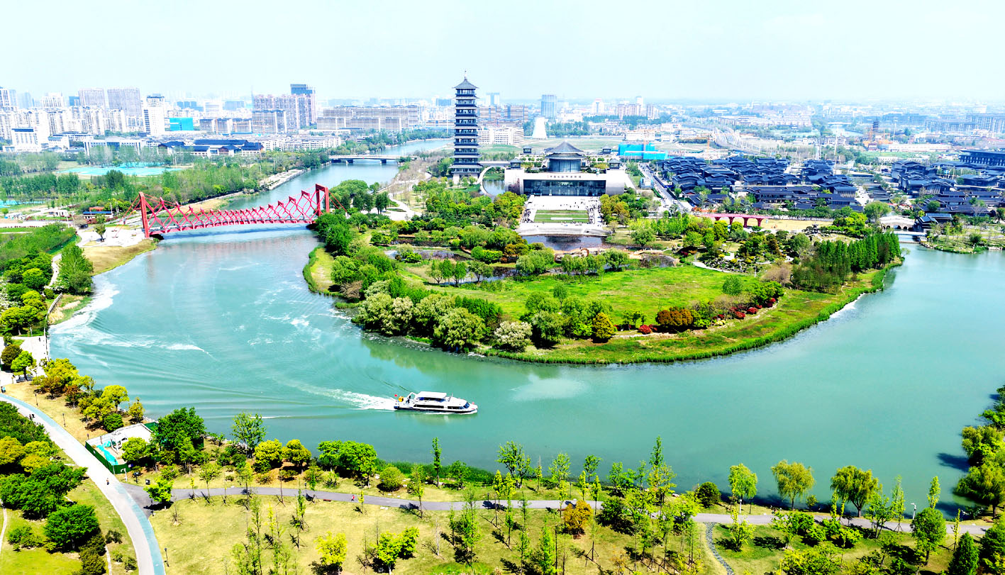 4月15日,扬州运河三湾生态文化公园春意盎然,樱花、海棠竞相绽放,古运河边垂柳依依,构成一幅幅美丽的春日画卷,吸引众多市民、游客前来踏春赏景,感受生态之美。 孟德龙 摄