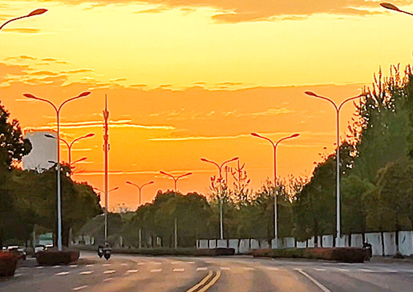 4月16日清晨,扬州上空上演了一场绚丽的朝霞盛宴,橙红、金黄、粉紫交织的霞光铺满天际,为古城披上一层鎏金纱衣,勾勒出一幅动人的春日晨景图 。高翔 司新利 摄