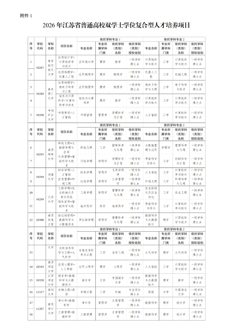日前,江苏省学位委员会办公室对2026年江苏省普通高校双学士学位复合型人才培养项目和联合学士学位培养项目进行公示,公示期为2026年4月15日至4月21日。