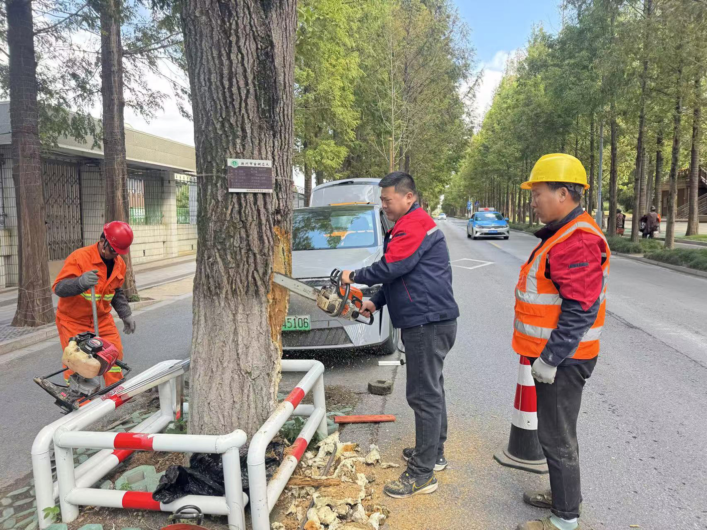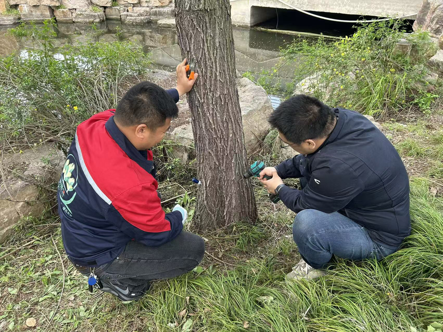4月也是树木白蚁的高发期。就在前几天,宋夹城景区巡查发现,不少树木上出现了大群白蚁的身影。接到“战报”,马爱才团队立刻驱车赶往现场,配合景区打响了一场“白蚁防治战”,确保12小时内完成消杀任务。
