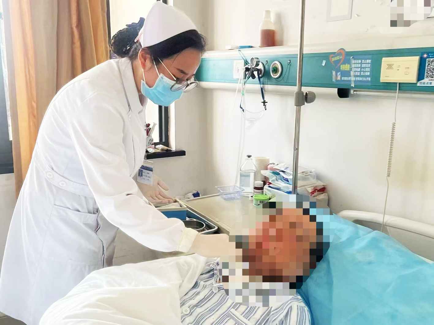 8天里,疼痛曾让老人彻夜难眠,吗啡注射后终于换来片刻安宁;8天里,同样是医生的儿子从外地赶来,日夜不离地守在床边;8天里,护士用家乡话和他聊天——原来他们都是兴化人,老人还高兴地录了一段小视频。