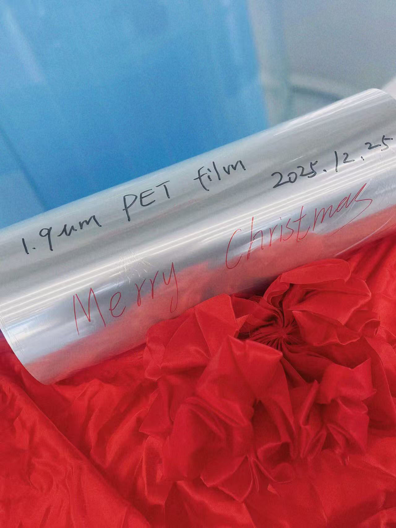 值得一提的是,从2025年6月投产后,扬州博恒不断优化工艺提升产品性能,到当年12月,PET薄膜厚度从最初8微米提升至1.9微米。这是什么概念?亚洲人头发直径约为80—120微米,这张薄膜的厚度约相当于一根头发的1/60。