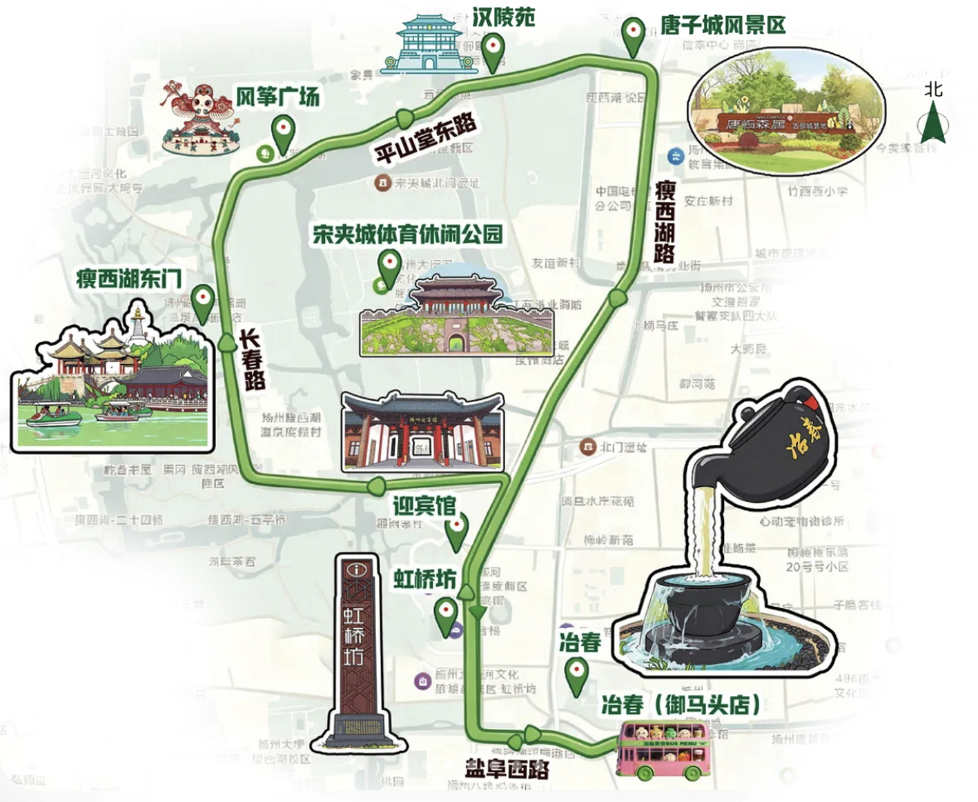 在运营线路方面,专线采取环线运行模式,串联起瘦西湖、宋夹城、四望亭、文昌阁等核心文旅地标。