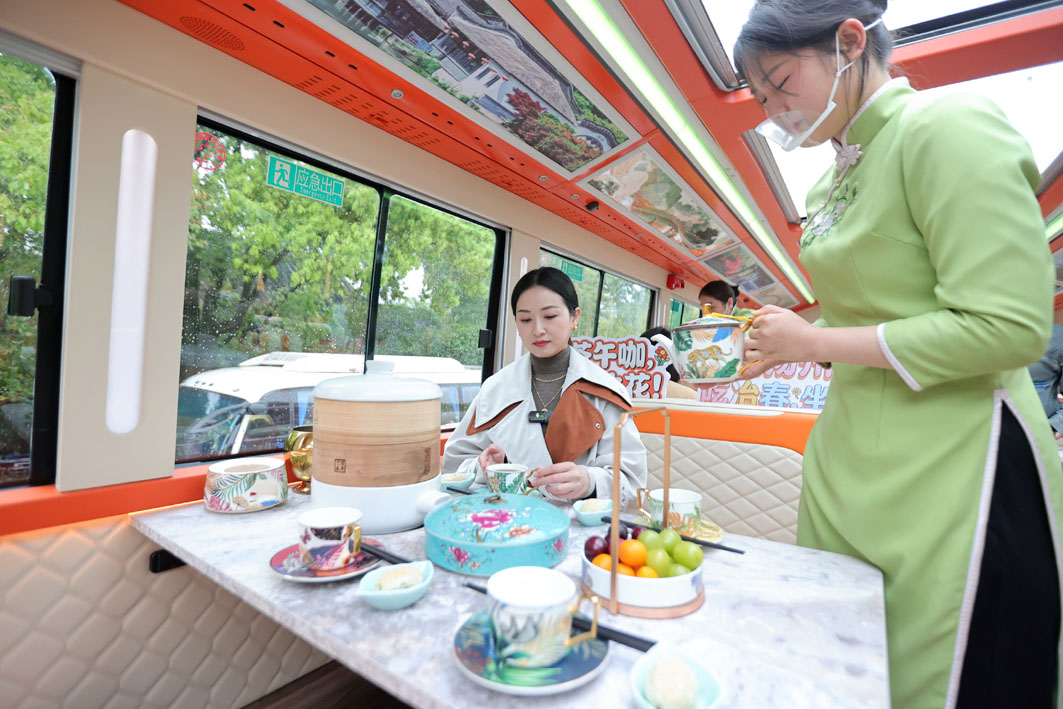 现场负责巴士改装工作的相关负责人表示,“以往游客品尝扬州早茶多为进店消费,如今我们通过空间重构,将巴士打造成为‘城市会客厅’与‘非遗厨房’,实现了‘景随车动、味随景生’的动态体验,这一模式极具市场吸引力。”