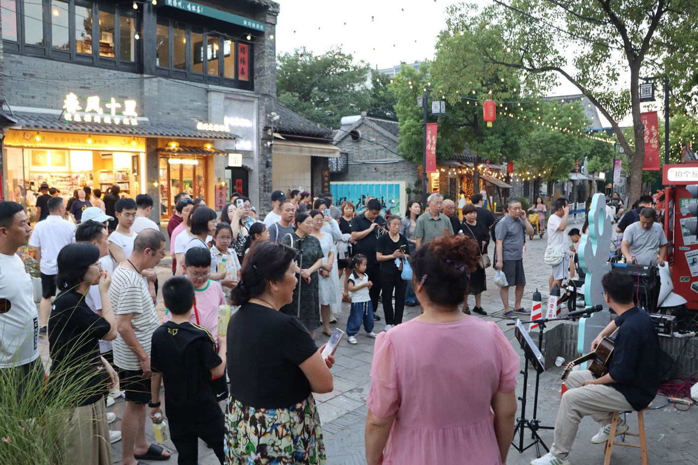 “没想到在古城街头能遇到这么有温度的活动。”来自上海的游客张女士举着刚领到的手绘扇,满脸欣喜,“既能听现场弹唱,还能请画家定制一把独一无二的扇子,发个朋友圈就领到了。这种体验有意思,孩子都不想走了。”不少游客纷纷驻足,或轻声跟唱,或排队求扇,皮市街的傍晚因这场街头艺术秀格外热闹。
